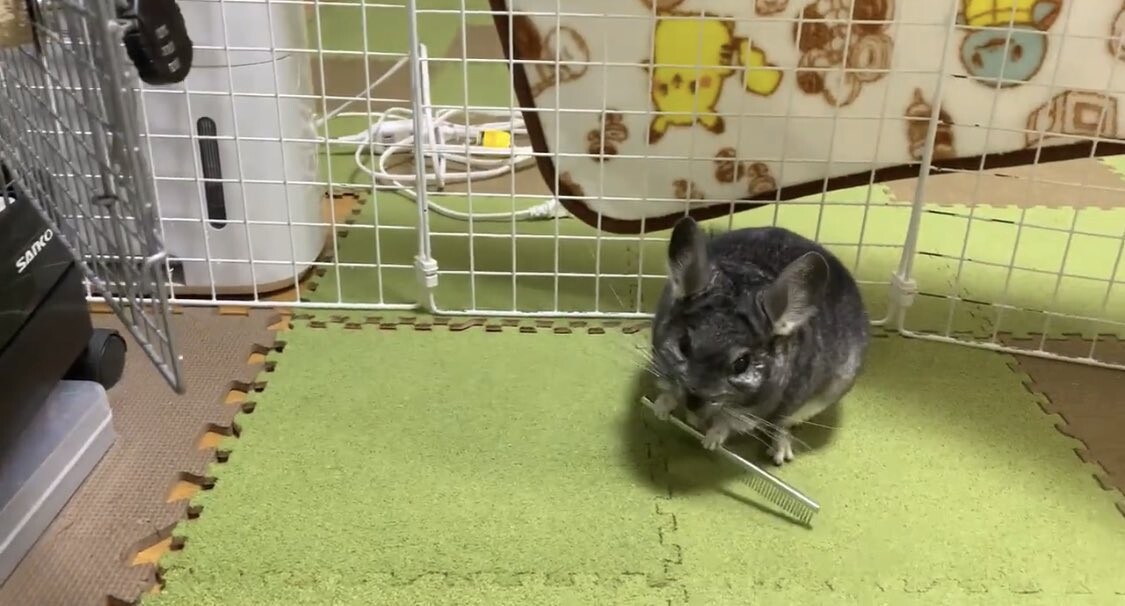 ブラッシングは微妙だけどブラシやクシは大好きでお持ち帰りするぽんさん