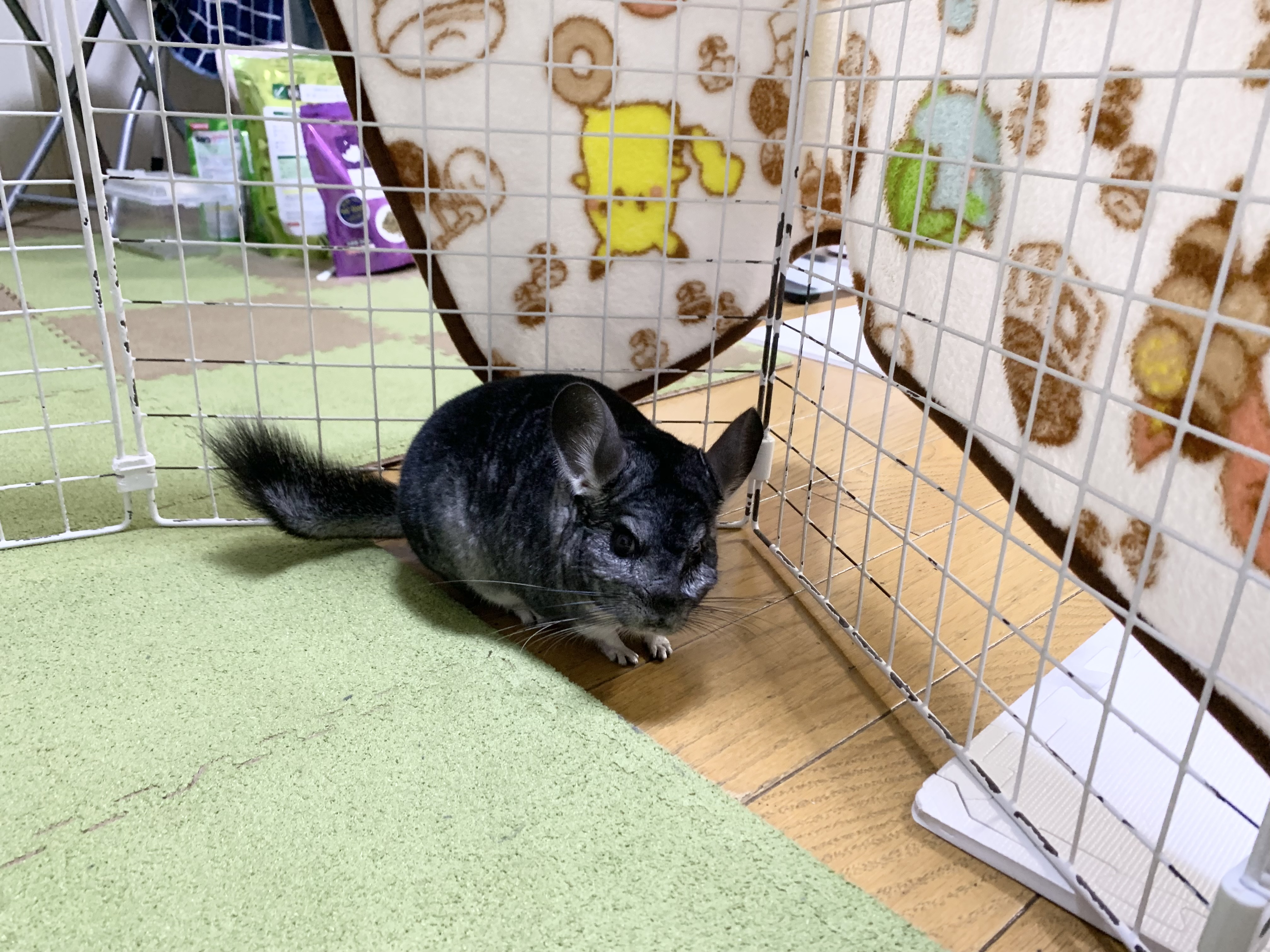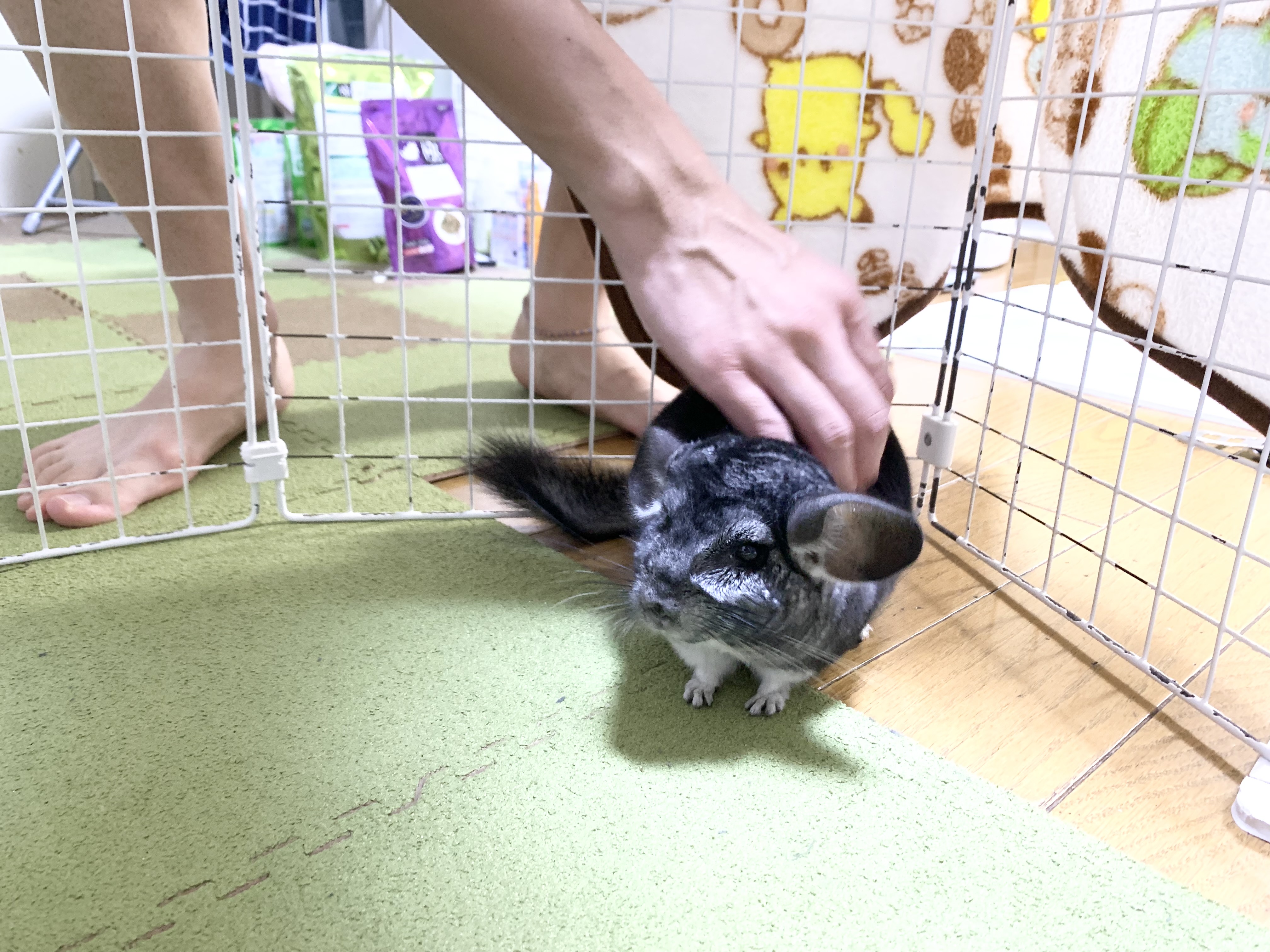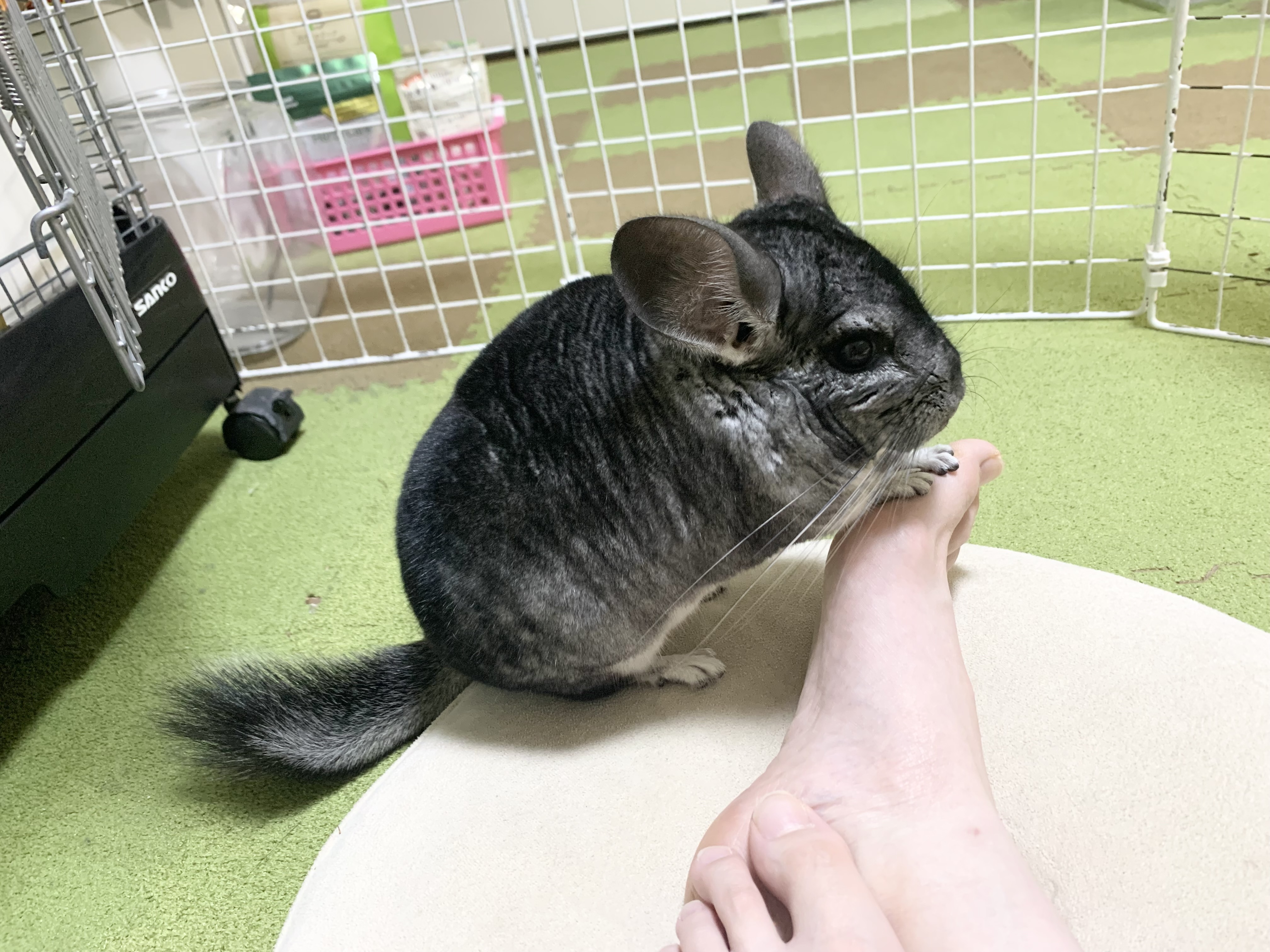 手を使うことが出来るぽんさんは、なぜか私の足におててを置いて休憩することもあります。