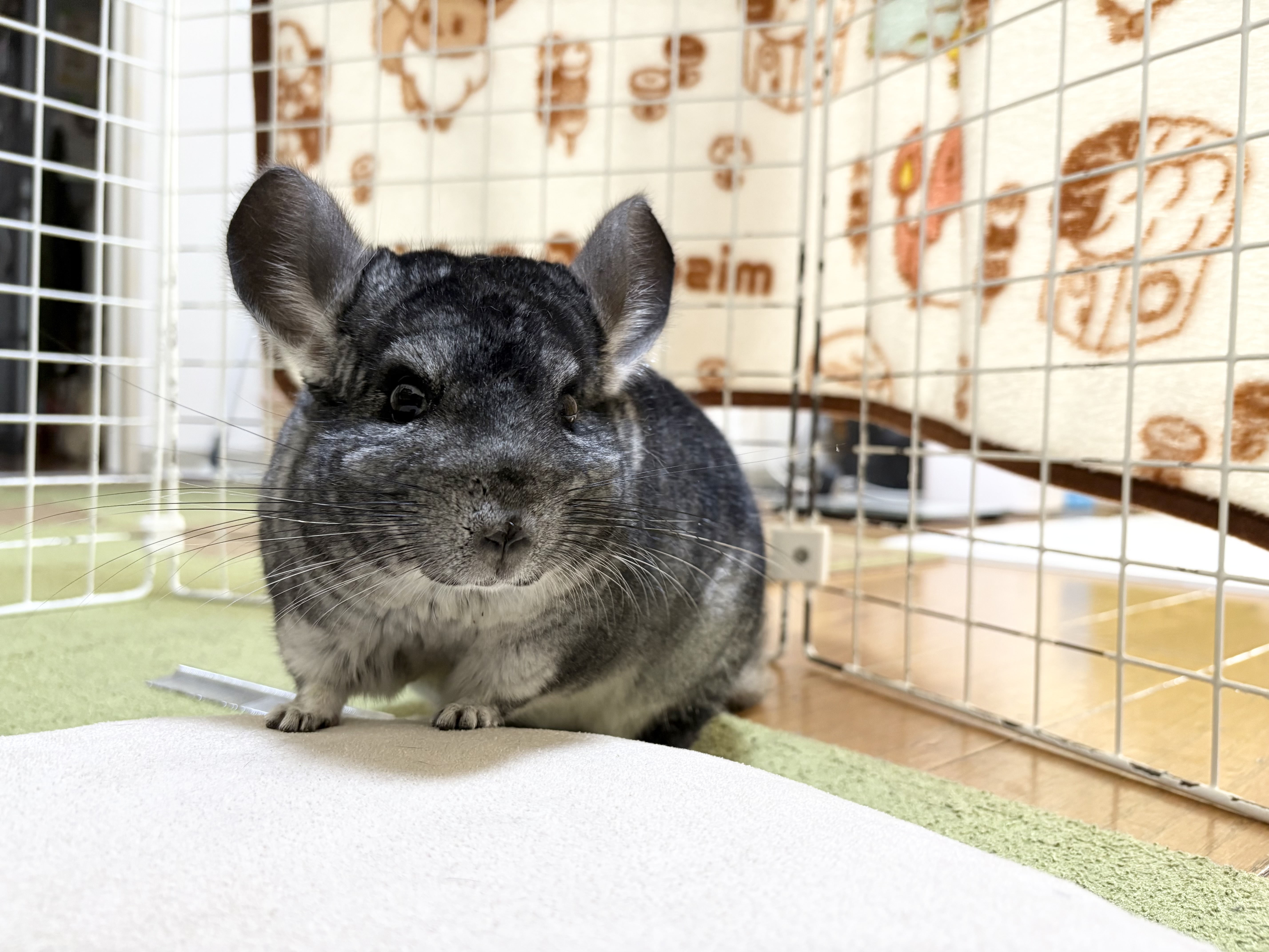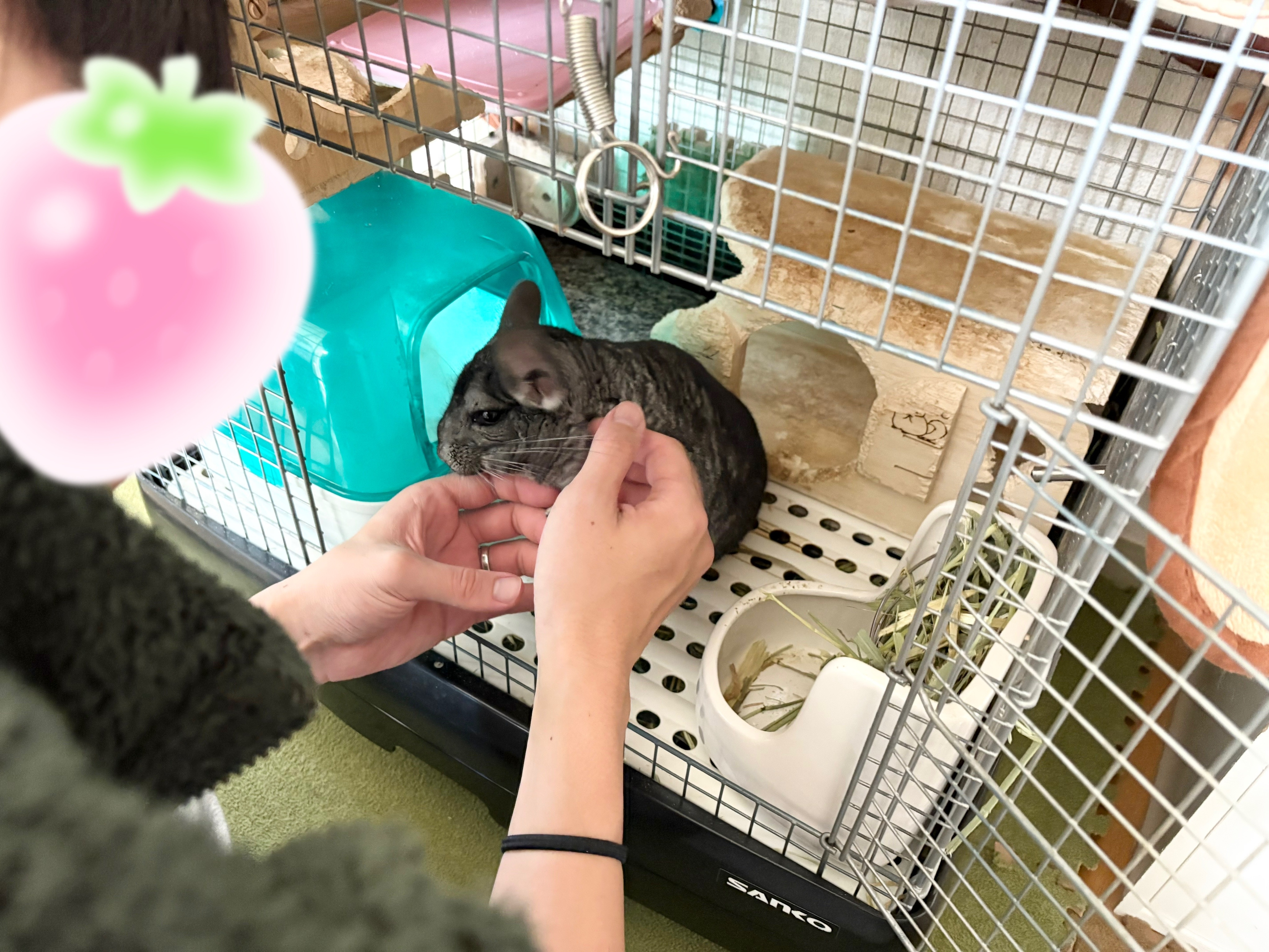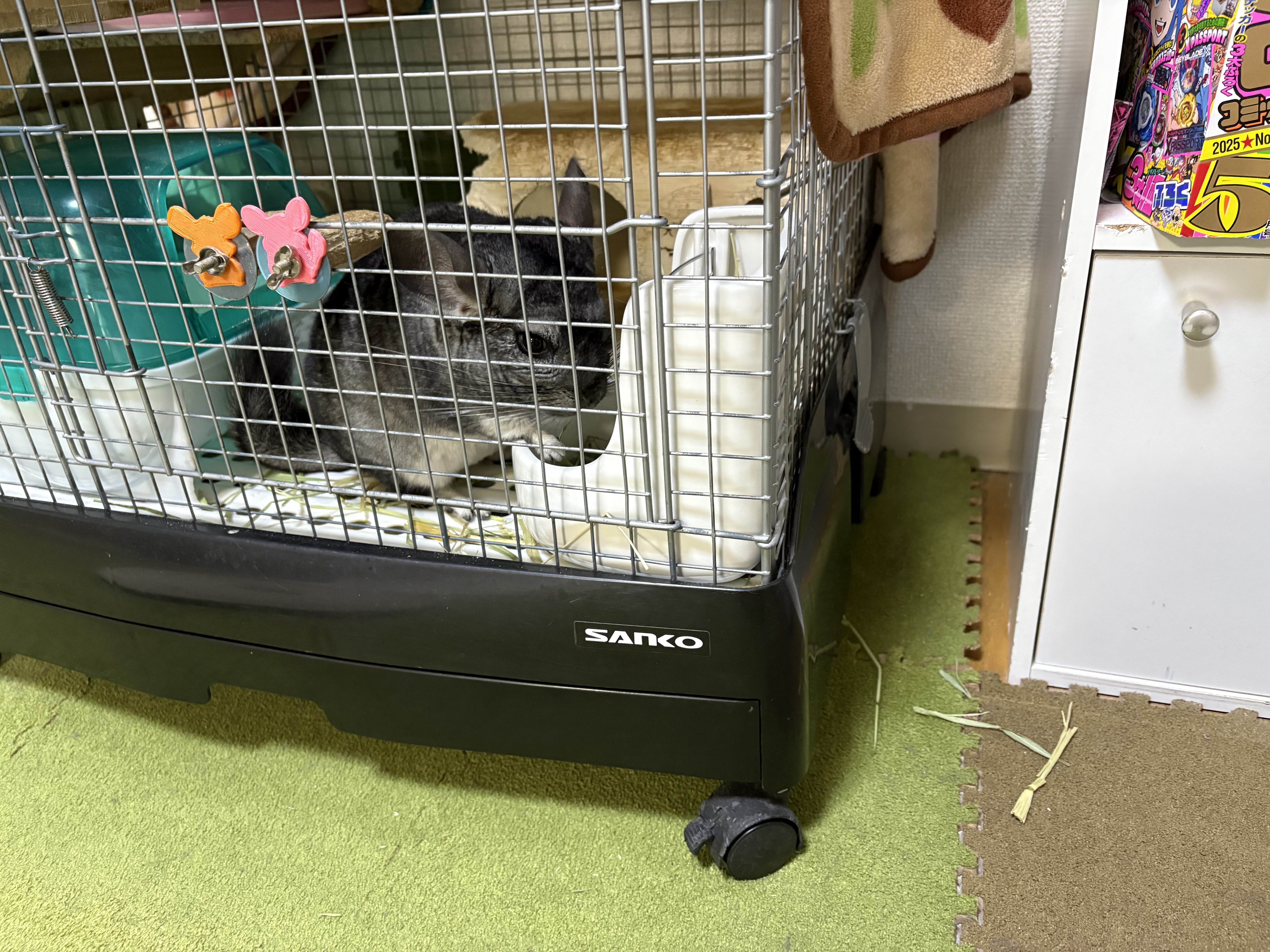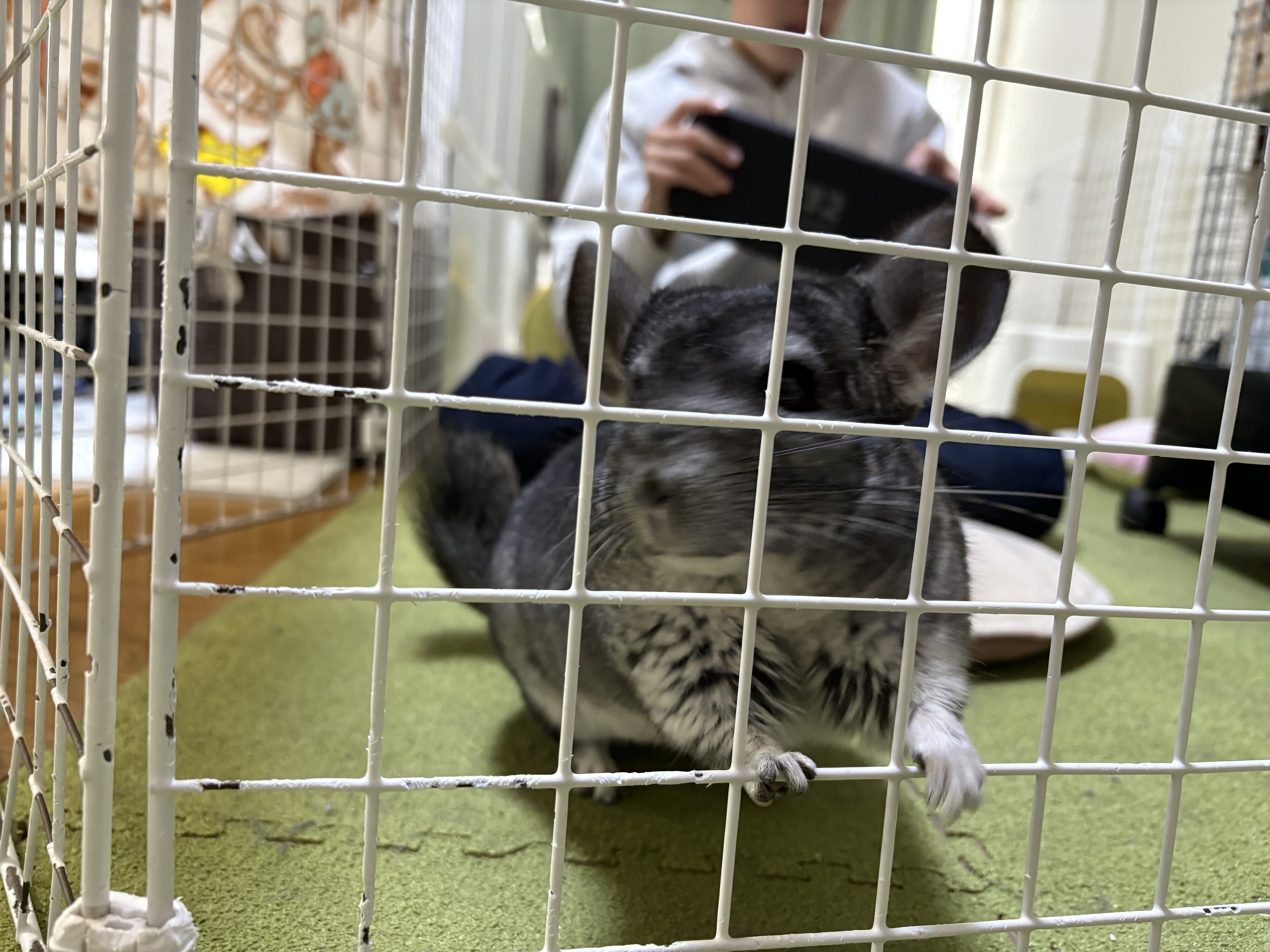 ケージを出たり入ったりして暴れていてめちゃくちゃうるさかったです😂