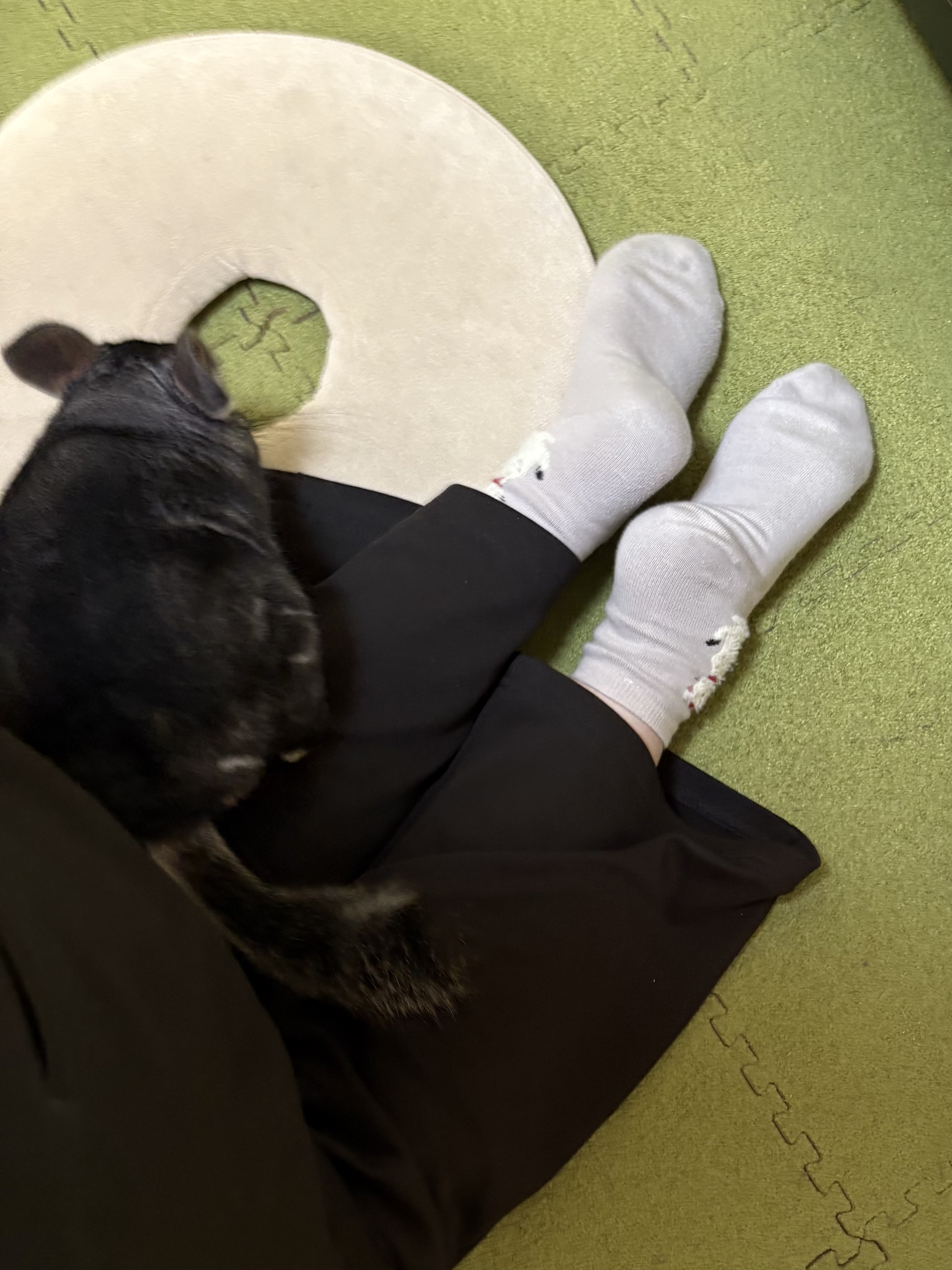 膝立ちをするとぽんがふくらはぎによく乗ってきます。