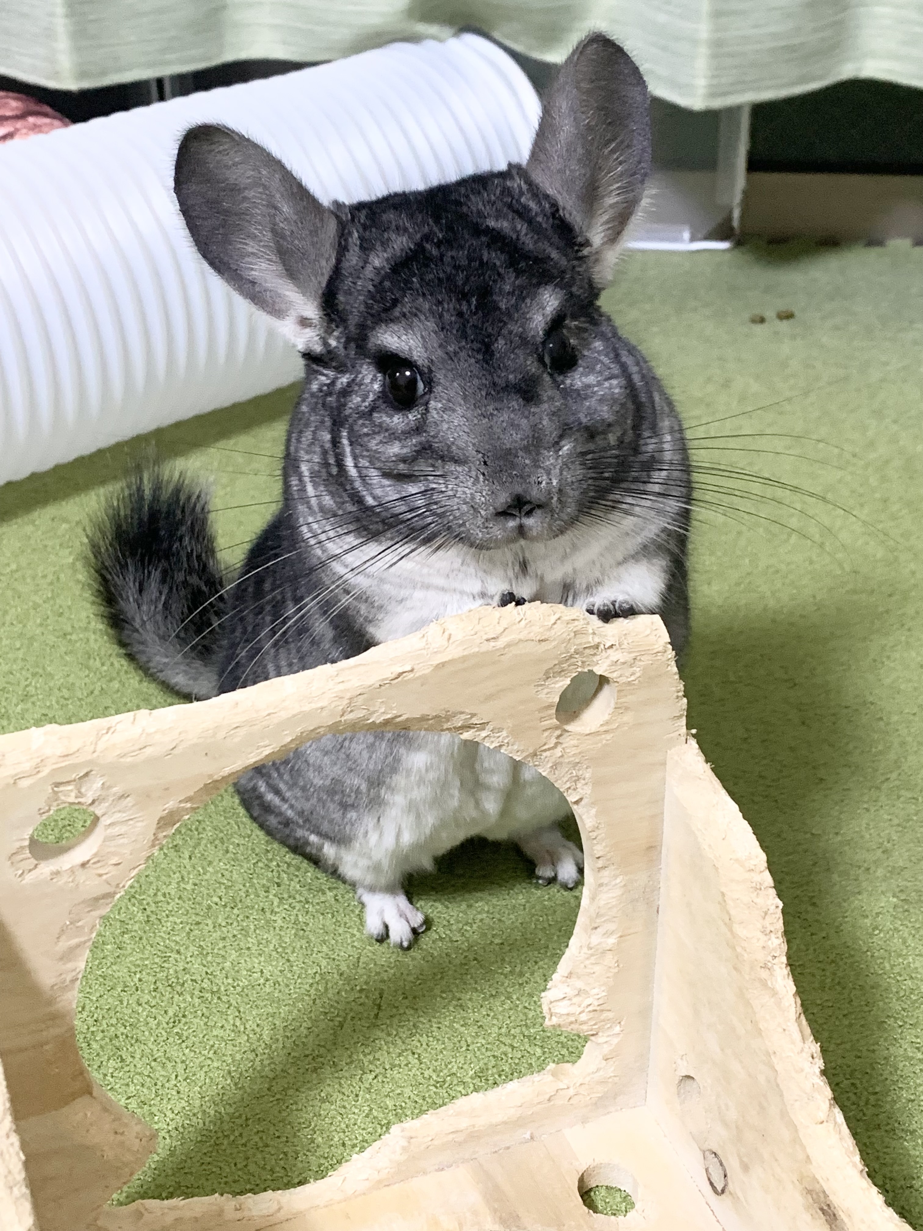 普段は朝カリカリを入れたらすぐに、ケージに戻って食べ出すのですが…